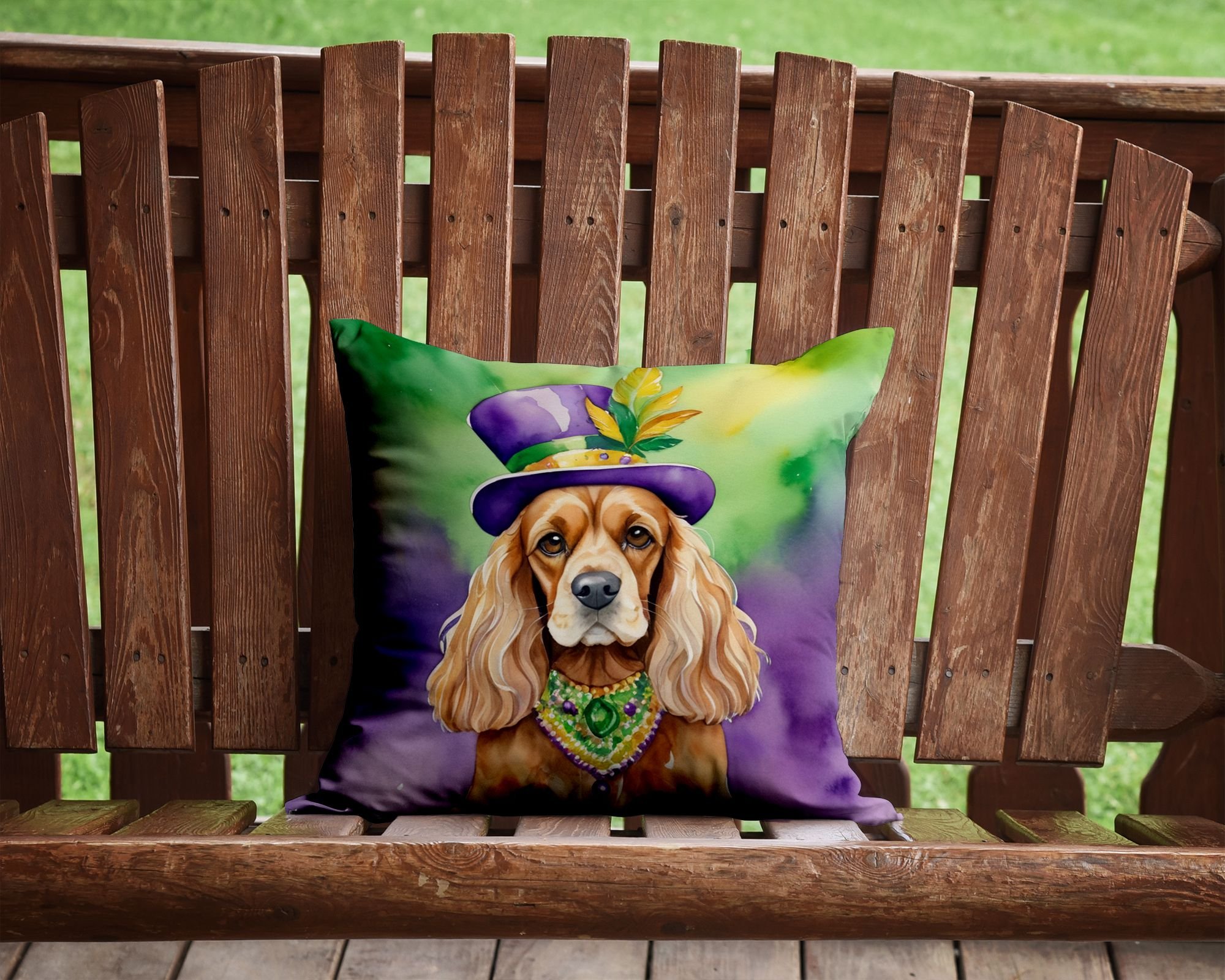 Throw Pillow featuring breed specific Cocker Spaniel artwork. Celebrate Mardi Gras with this Mardi Gras Pillow. Add a touch of vibrancy and comfort to your outdoor seating with Caroline's Treasures Fabric Decorative Pillow. Measuring approximately 14 inches by 14 inches, this outdoor pillow is crafted to elevate the appeal of your patio furniture, infusing it with vivid color and artistic flair. The pillow includes a 100% Polyester Fabric sham filled with a quality pillow form to provide superior comfort. Innovatively made from our brand new material, specifically woven for its water resistance, this pillow is designed for durability. The soft canvas fabric offers versatility in use, fit for your indoor couch or your outdoor patio, porch, or veranda. The fabric is dyed with colorfast dyes built for resilience against weather conditions, ensuring the pillow retains its beauty over time. Constructed by sewing three fabric pieces to create a sham, the polyester insert is then nestled inside to form the pillow, resulting in an overstuffed pillow that maintains its shape. Both the sham and the pillow insert are proudly made in the United States. As the pillows are handcrafted, there may be minor variations in size, further enhancing their unique charm. Experience comfort in style with Caroline's Treasures Fabric Decorative Pillow.